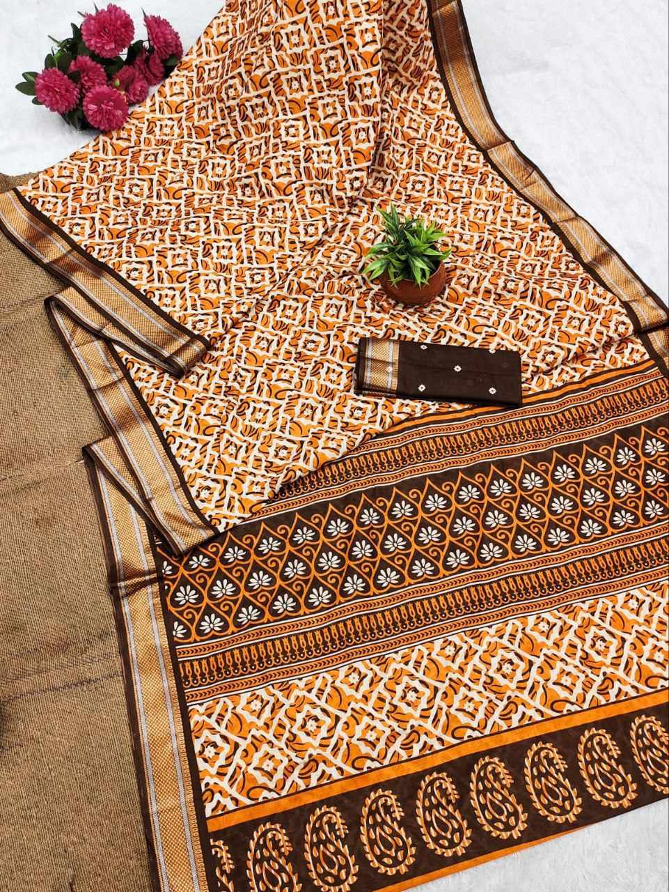 JBC 1095 Golden mulmul Cotton Saree