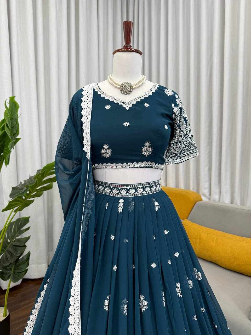 Name : QRC 382 Beautifual Teal Blue Heavy Designer Lehenga